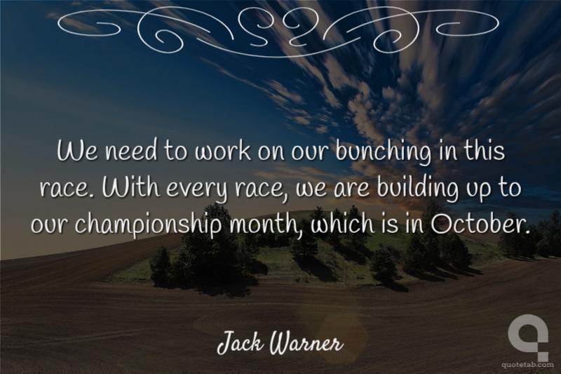 We need to work on our bunching in this race. With every race, we are building up to our championship month, which is in October.