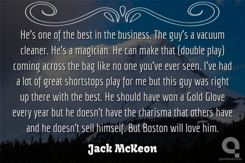 He's one of the best in the business. The guy's a vacuum cleaner. He's a magician. He can make that (double play) coming across the bag like no one you've ever seen. I've had a lot of great shortstops play for me but this guy was right up there with the best. He should have won a Gold Glove every year but he doesn't have the charisma that others have and he doesn't sell himself. But Boston will love him.