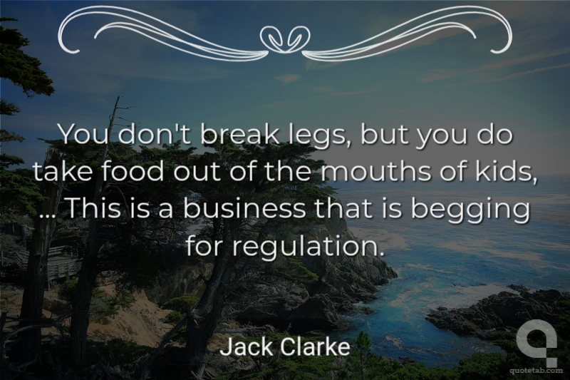 You don't break legs, but you do take food out of the mouths of kids, ... This is a business that is begging for regulation.