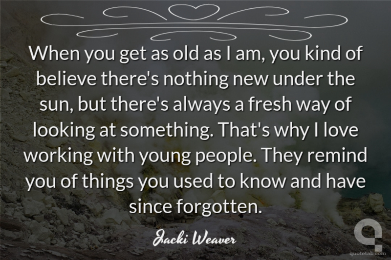 When you get as old as I am, you kind of believe there's nothing new under the sun, but there's always a fresh way of looking at something. That's why I love working with young people. They remind you of things you used to know and have since forgotten.