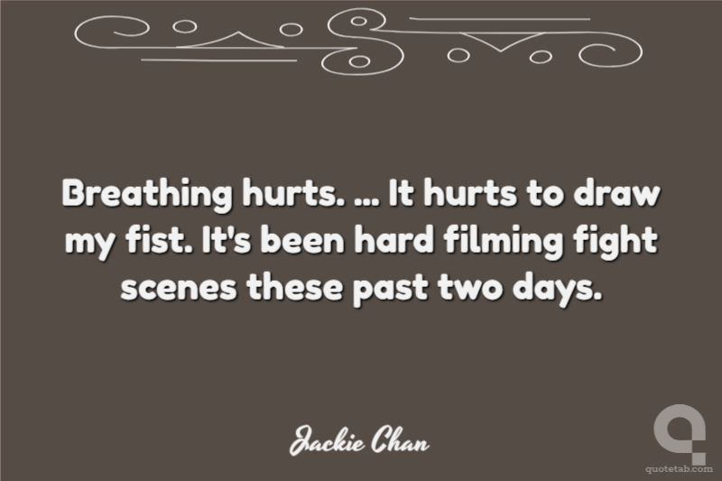 Breathing hurts. ... It hurts to draw my fist. It's been hard filming fight scenes these past two days.