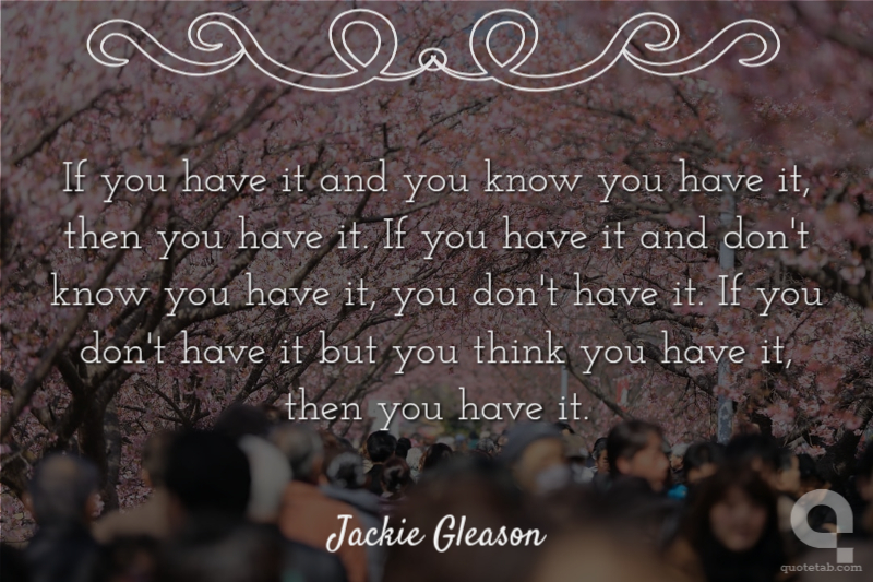 If you have it and you know you have it, then you have it. If you have it and don't know you have it, you don't have it. If you don't have it but you think you have it, then you have it.