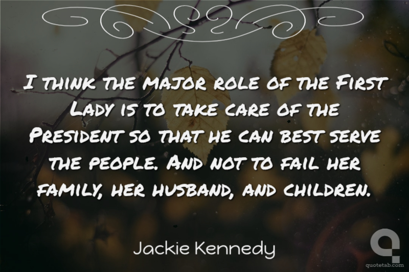 I think the major role of the First Lady is to take care of the President so that he can best serve the people. And not to fail her family, her husband, and children.