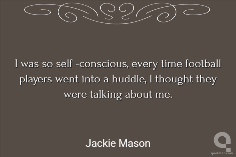 I was so self -conscious, every time football players went into a huddle, I thought they were talking about me.