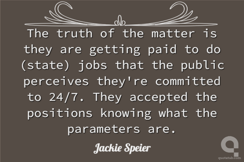 The truth of the matter is they are getting paid to do (state) jobs that the public perceives they're committed to 24/7. They accepted the positions knowing what the parameters are.