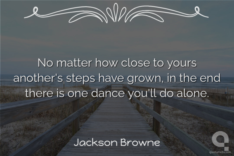 No matter how close to yours another's steps have grown, in the end there is one dance you'll do alone.