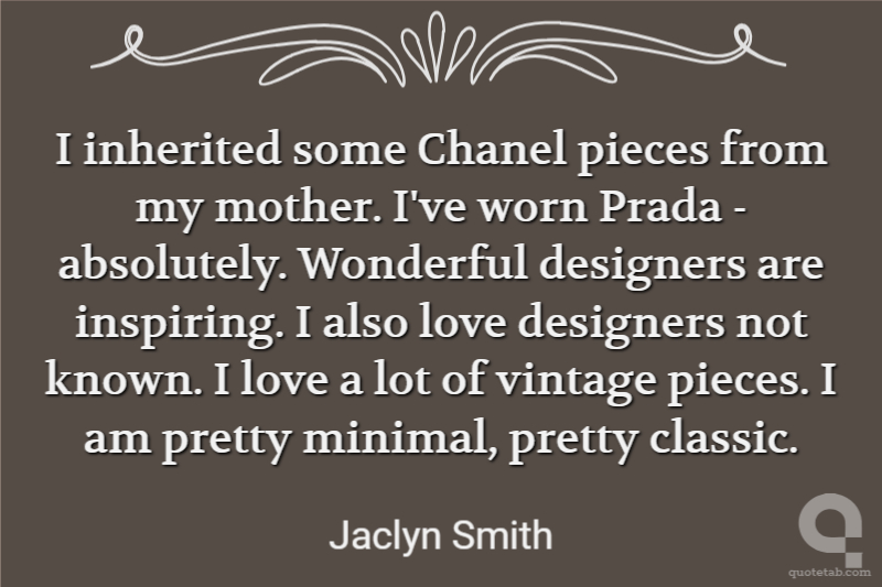I inherited some Chanel pieces from my mother. I've worn Prada - absolutely. Wonderful designers are inspiring. I also love designers not known. I love a lot of vintage pieces. I am pretty minimal, pretty classic.