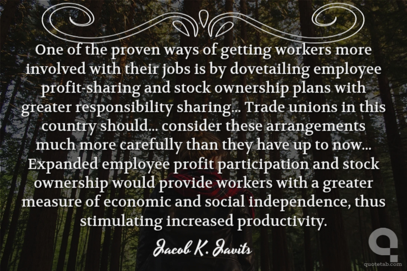 One of the proven ways of getting workers more involved with their jobs is by dovetailing employee profit-sharing and stock ownership plans with greater responsibility sharing... Trade unions in this country should... consider these arrangements much more carefully than they have up to now... Expanded employee profit participation and stock ownership would provide workers with a greater measure of economic and social independence, thus stimulating increased productivity.