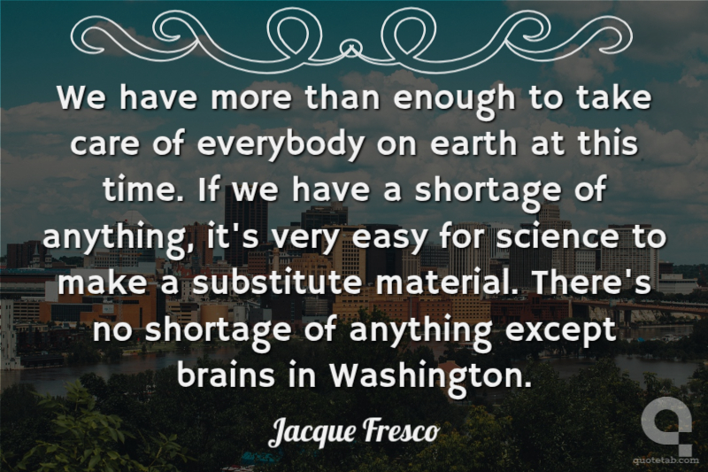 We have more than enough to take care of everybody on earth at this time. If we have a shortage of anything, it's very easy for science to make a substitute material. There's no shortage of anything except brains in Washington.
