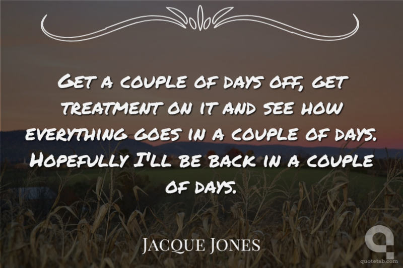 Get a couple of days off, get treatment on it and see how everything goes in a couple of days. Hopefully I'll be back in a couple of days.
