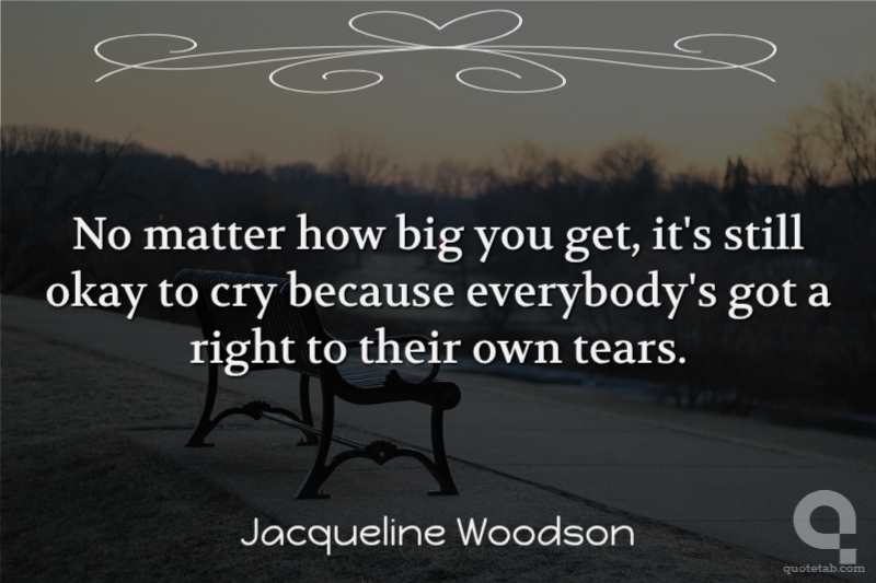 No matter how big you get, it's still okay to cry because everybody's got a right to their own tears.