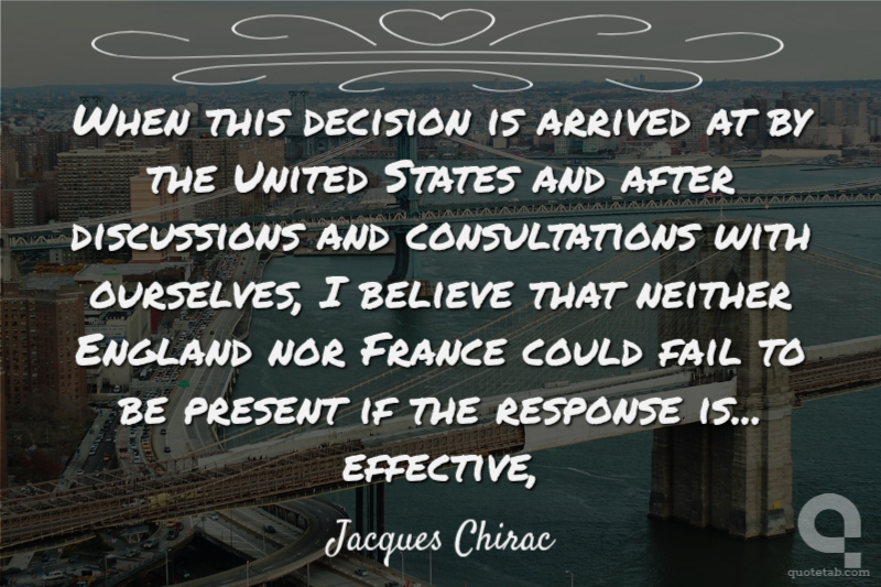 When this decision is arrived at by the United States and after discussions and consultations with ourselves, I believe that neither England nor France could fail to be present if the response is... effective,