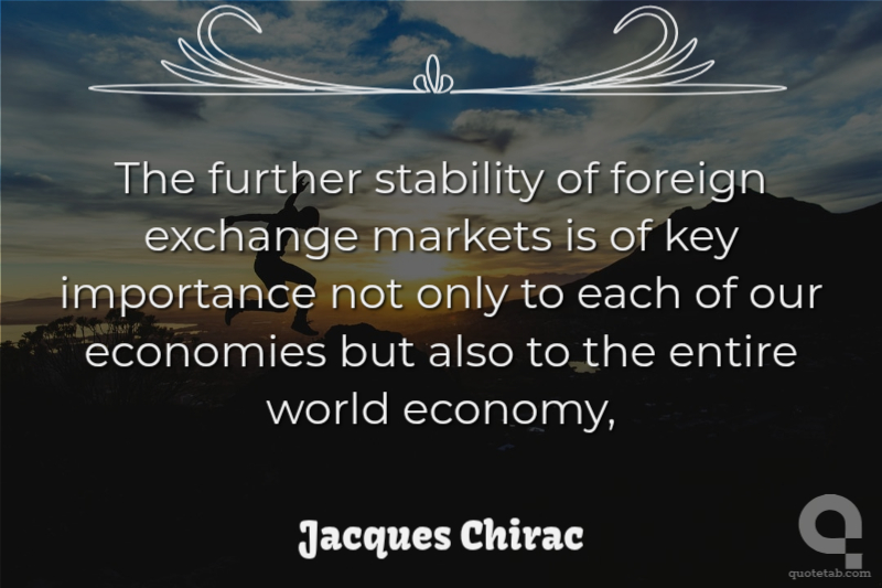 The further stability of foreign exchange markets is of key importance not only to each of our economies but also to the entire world economy,