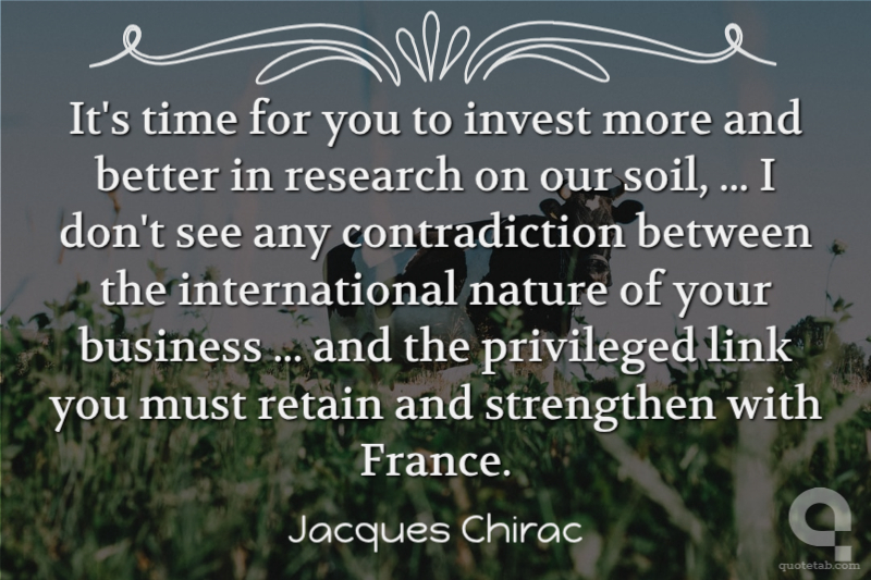 It's time for you to invest more and better in research on our soil, ... I don't see any contradiction between the international nature of your business ... and the privileged link you must retain and strengthen with France.