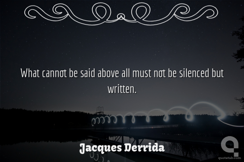 The trace I leave to me means at once my death, to come or already come, and the hope that it will survive me. It is not an ambition of immortality; it is fundamental. I leave here a bit of paper, I leave, I die; it is impossible to exit this structure; it is the unchanging form of my life. Every time I let something go, I live my death in writing.