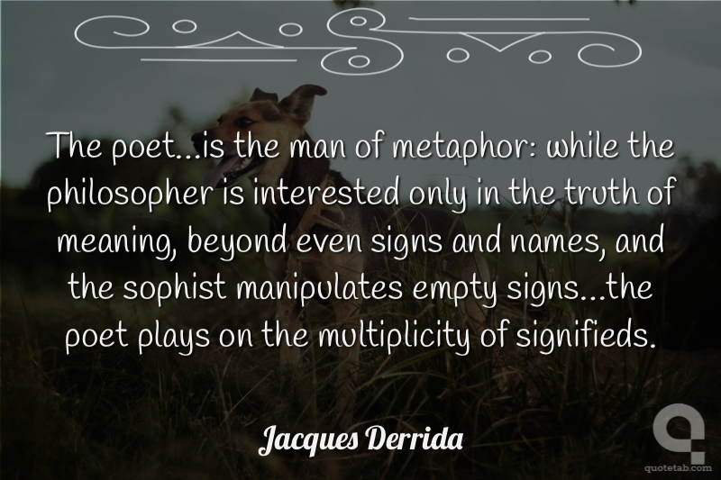 The poet…is the man of metaphor: while the philosopher is interested only in the truth of meaning, beyond even signs and names, and the sophist manipulates empty signs…the poet plays on the multiplicity of signifieds.
