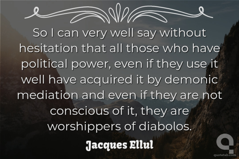 So I can very well say without hesitation that all those who have political power, even if they use it well have acquired it by demonic mediation and even if they are not conscious of it, they are worshippers of diabolos.