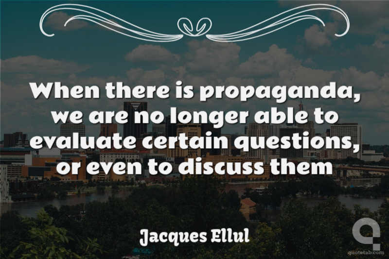 When there is propaganda, we are no longer able to evaluate certain questions, or even to discuss them