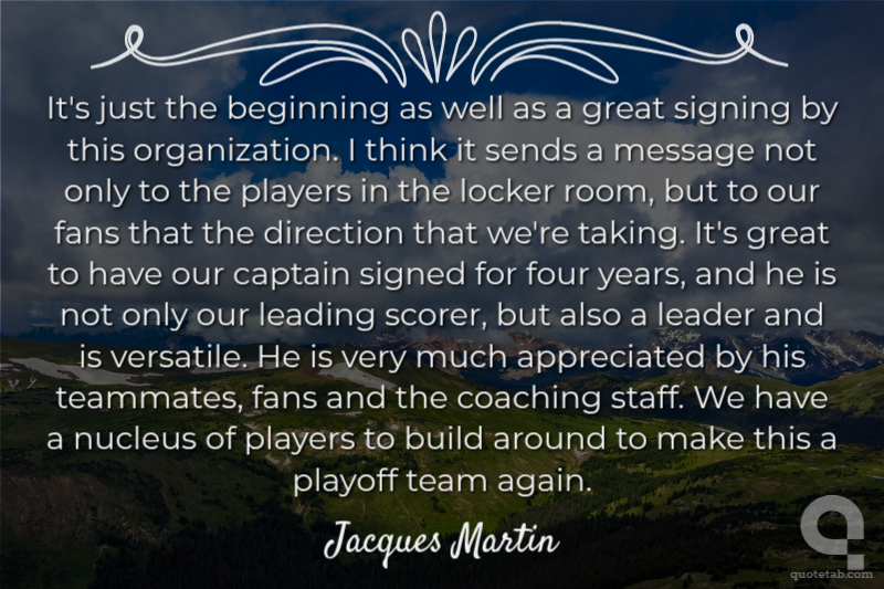 It's just the beginning as well as a great signing by this organization. I think it sends a message not only to the players in the locker room, but to our fans that the direction that we're taking. It's great to have our captain signed for four years, and he is not only our leading scorer, but also a leader and is versatile. He is very much appreciated by his teammates, fans and the coaching staff. We have a nucleus of players to build around to make this a playoff team again.