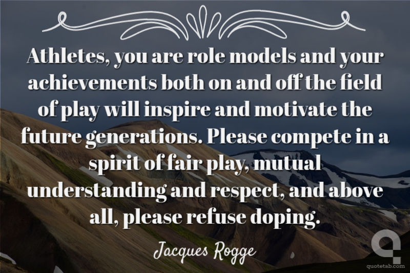Athletes, you are role models and your achievements both on and off the field of play will inspire and motivate the future generations. Please compete in a spirit of fair play, mutual understanding and respect, and above all, please refuse doping.