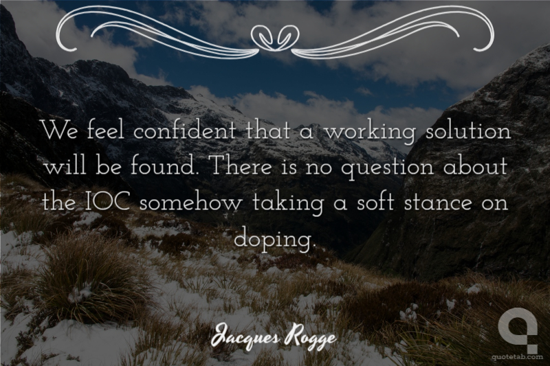 We feel confident that a working solution will be found. There is no question about the IOC somehow taking a soft stance on doping.