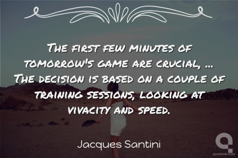 The first few minutes of tomorrow's game are crucial, ... The decision is based on a couple of training sessions, looking at vivacity and speed.
