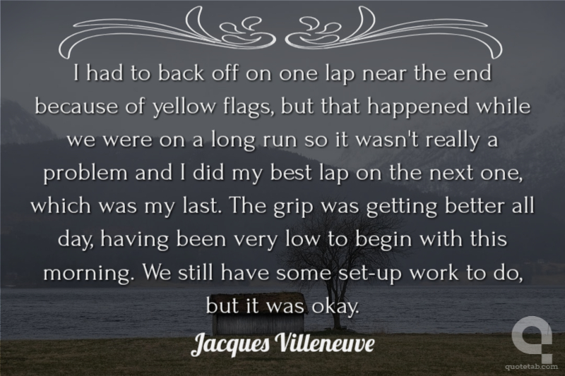 I had to back off on one lap near the end because of yellow flags, but that happened while we were on a long run so it wasn't really a problem and I did my best lap on the next one, which was my last. The grip was getting better all day, having been very low to begin with this morning. We still have some set-up work to do, but it was okay.