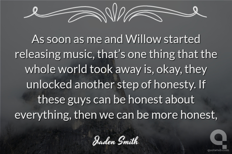 As soon as me and Willow started releasing music, that’s one thing that the whole world took away is, okay, they unlocked another step of honesty. If these guys can be honest about everything, then we can be more honest,