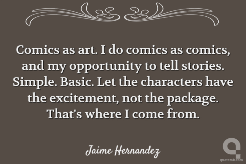 Comics as art. I do comics as comics, and my opportunity to tell stories. Simple. Basic. Let the characters have the excitement, not the package. That's where I come from.