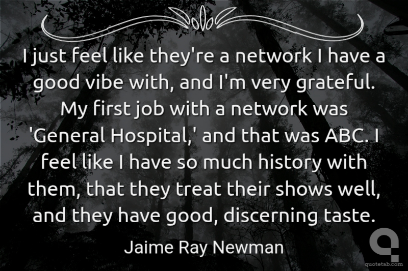 I just feel like they're a network I have a good vibe with, and I'm very grateful. My first job with a network was 'General Hospital,' and that was ABC. I feel like I have so much history with them, that they treat their shows well, and they have good, discerning taste.
