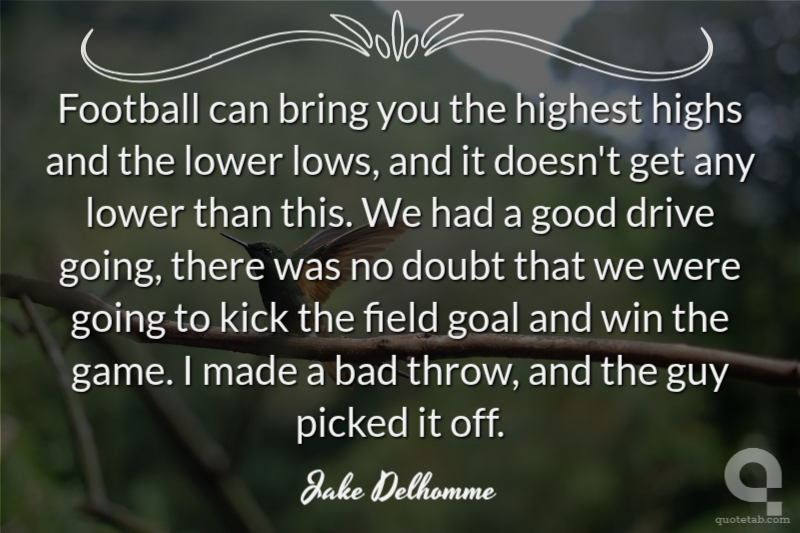 Football can bring you the highest highs and the lower lows, and it doesn't get any lower than this. We had a good drive going, there was no doubt that we were going to kick the field goal and win the game. I made a bad throw, and the guy picked it off.