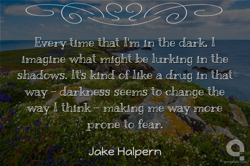 Every time that I'm in the dark, I imagine what might be lurking in the shadows. It's kind of like a drug in that way - darkness seems to change the way I think - making me way more prone to fear.