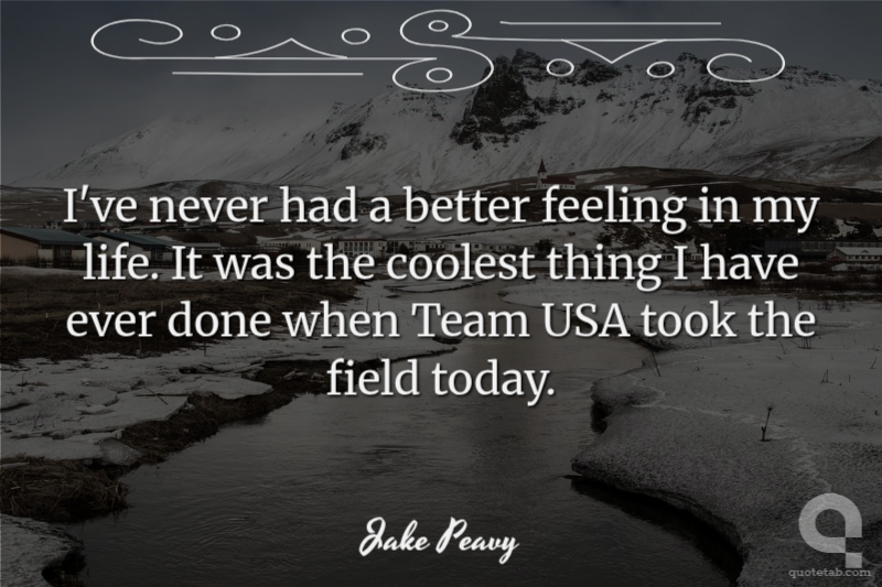 I've never had a better feeling in my life. It was the coolest thing I have ever done when Team USA took the field today.