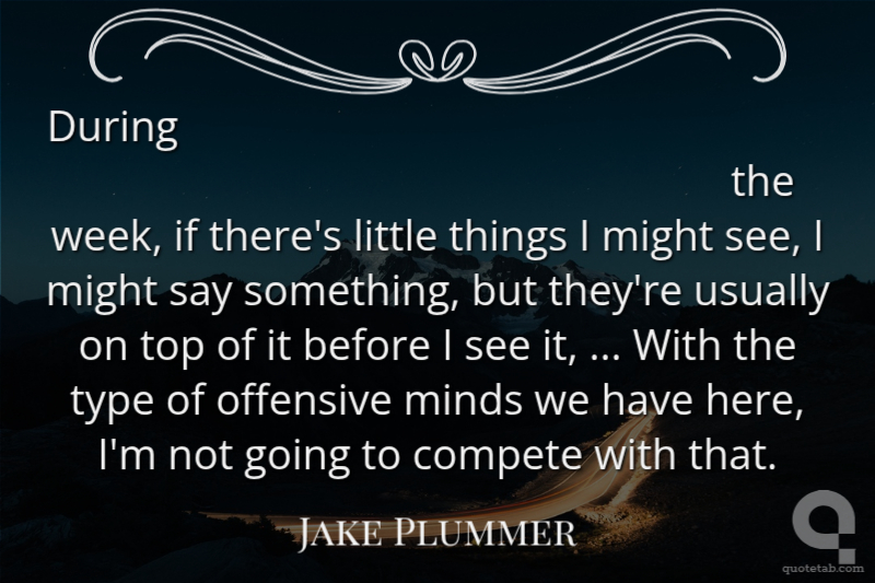 During the week, if there's little things I might see, I might say something, but they're usually on top of it before I see it, ... With the type of offensive minds we have here, I'm not going to compete with that.
