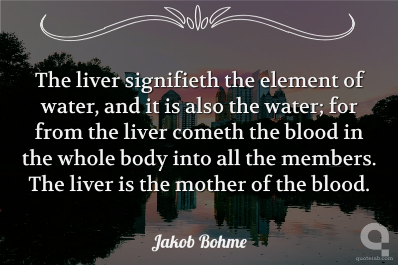 The liver signifieth the element of water, and it is also the water; for from the liver cometh the blood in the whole body into all the members. The liver is the mother of the blood.