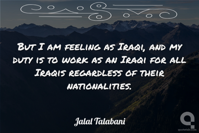 But I am feeling as Iraqi, and my duty is to work as an Iraqi for all Iraqis regardless of their nationalities.