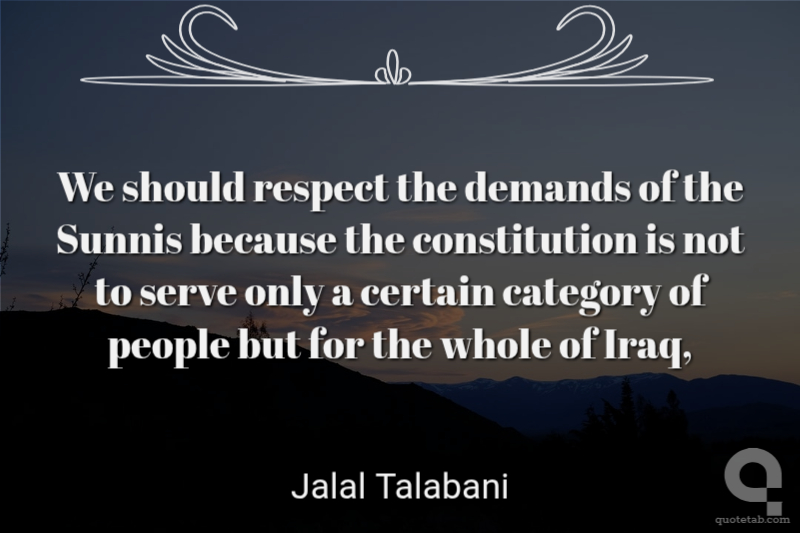 We should respect the demands of the Sunnis because the constitution is not to serve only a certain category of people but for the whole of Iraq,