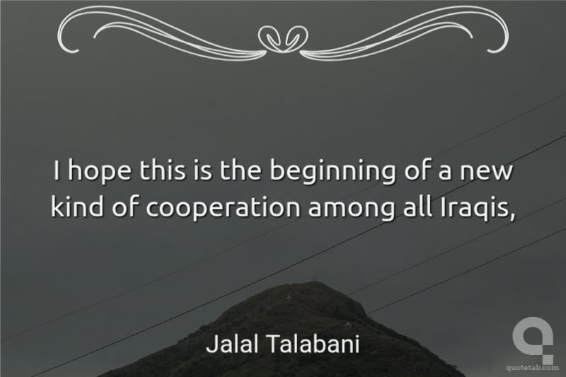I hope this is the beginning of a new kind of cooperation among all Iraqis,