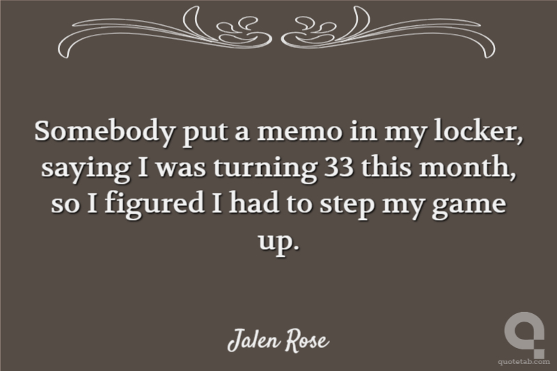 Somebody put a memo in my locker, saying I was turning 33 this month, so I figured I had to step my game up.