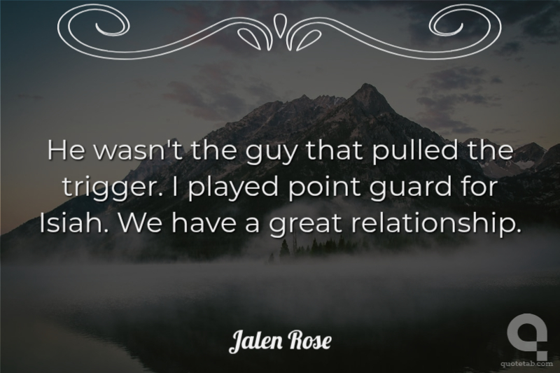 He wasn't the guy that pulled the trigger. I played point guard for Isiah. We have a great relationship.