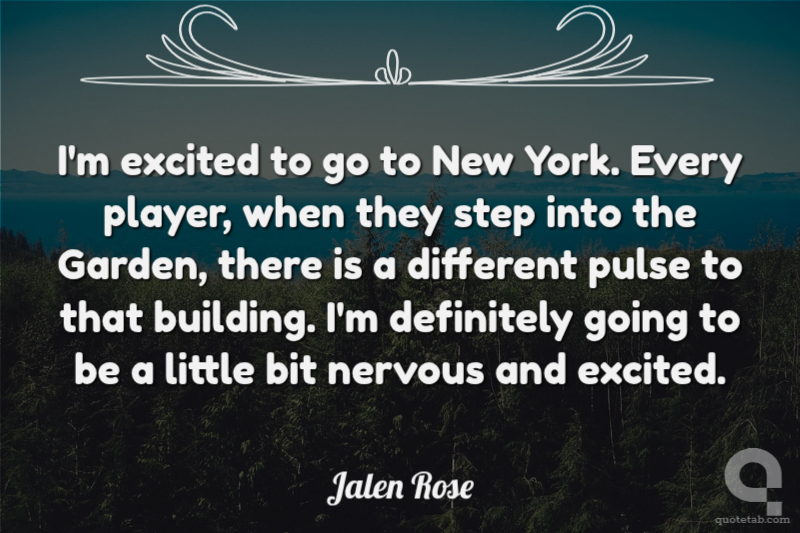 I'm excited to go to New York. Every player, when they step into the Garden, there is a different pulse to that building. I'm definitely going to be a little bit nervous and excited.