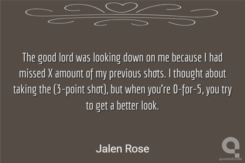 The good lord was looking down on me because I had missed X amount of my previous shots. I thought about taking the (3-point shot), but when you're 0-for-5, you try to get a better look.