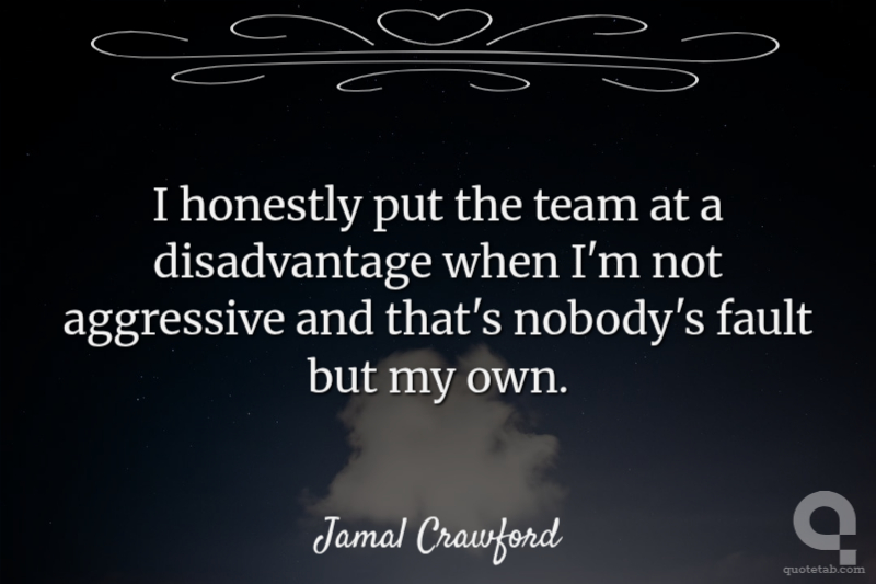 I honestly put the team at a disadvantage when I'm not aggressive and that's nobody's fault but my own.
