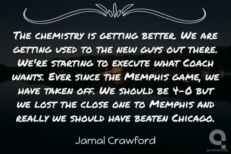 The chemistry is getting better. We are getting used to the new guys out there. We're starting to execute what Coach wants. Ever since the Memphis game, we have taken off. We should be 4-0 but we lost the close one to Memphis and really we should have beaten Chicago.