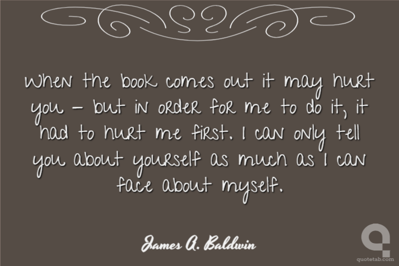 When the book comes out it may hurt you - but in order for me to do it, it had to hurt me first. I can only tell you about yourself as much as I can face about myself.