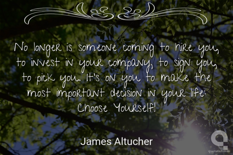 No longer is someone coming to hire you, to invest in your company, to sign you, to pick you. It's on you to make the most important decision in your life: Choose Yourself!