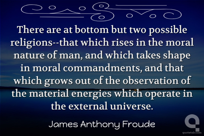 There are at bottom but two possible religions--that which rises in the moral nature of man, and which takes shape in moral commandments, and that which grows out of the observation of the material energies which operate in the external universe.