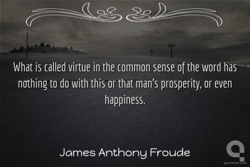 What is called virtue in the common sense of the word has nothing to do with this or that man's prosperity, or even happiness.