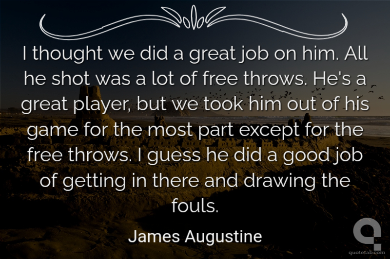 I thought we did a great job on him. All he shot was a lot of free throws. He's a great player, but we took him out of his game for the most part except for the free throws. I guess he did a good job of getting in there and drawing the fouls.