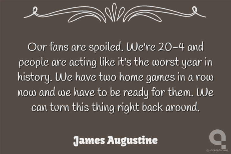 Our fans are spoiled. We're 20-4 and people are acting like it's the worst year in history. We have two home games in a row now and we have to be ready for them. We can turn this thing right back around.
